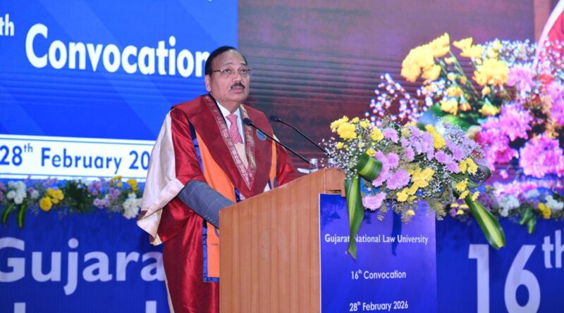 Gandhinagar, February 28: The Chief Justice of India, Surya Kant, on Friday delivered a profound and reflective keynote address at the convocation ceremony of Gujarat National Law University (GNLU), Gandhinagar, urging young advocates to embrace professional specialisation, ethical integrity, and discipline-driven practice as the cornerstones of a meaningful legal career.
